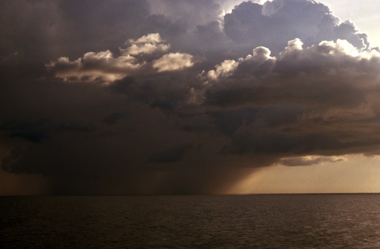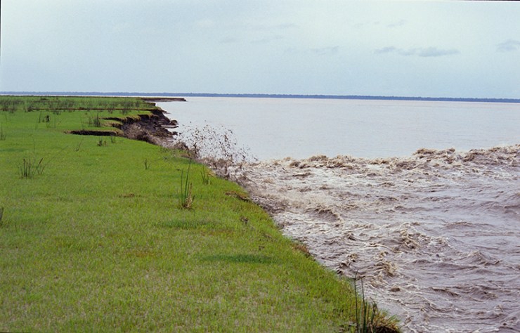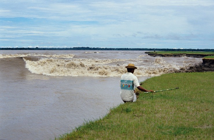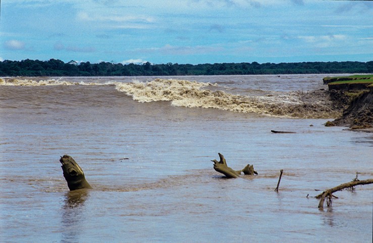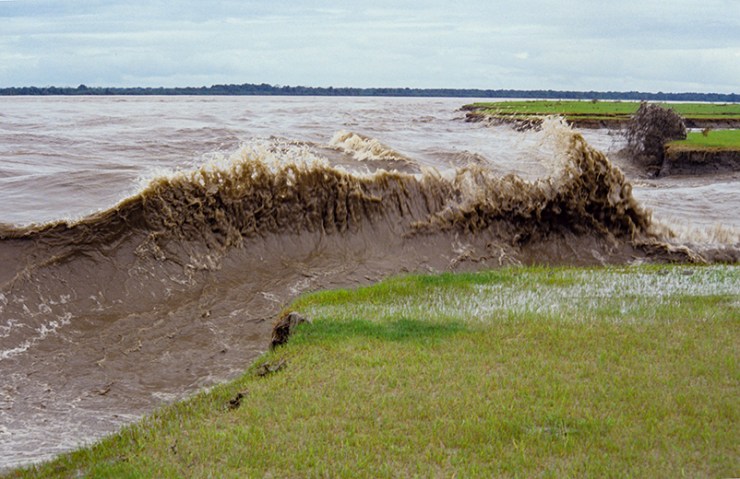 The pororoca or tidal bore, happens when the Amazon river clashes violently with the Atlantic Ocean, especially at full moon, in the Marajó archipelago.