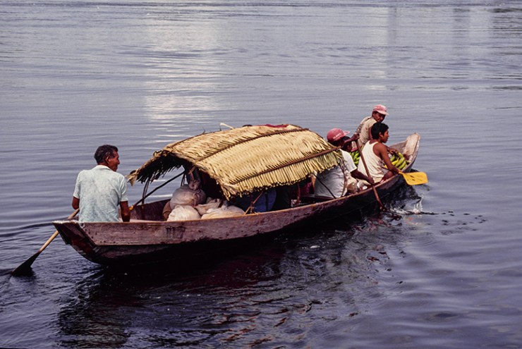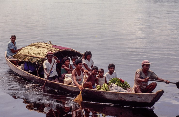 As canoas e embarcações maiores são os principais meios de transporte. As viagens duram horas ou dias e as pessoas dormem em redes que balançam com o barco.