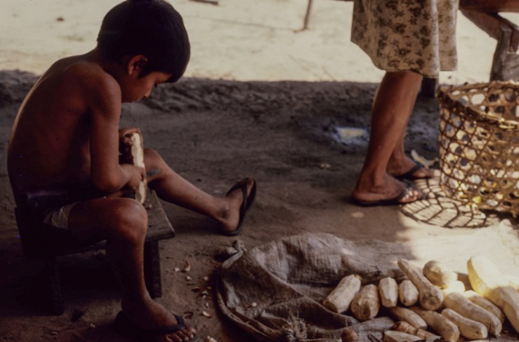 Manioc or cassava flour is the basis of food in the Amazon and an essential ingredient of the Brazilian population. There are several types of manioc and from the root of the plant it is produced the different types of flour which can be yellow or white . They are ingredients of several other foods typical of indigenous and Brazilian culinary. In rural Amazon, almost all families own their flour huts, which can also be communal.