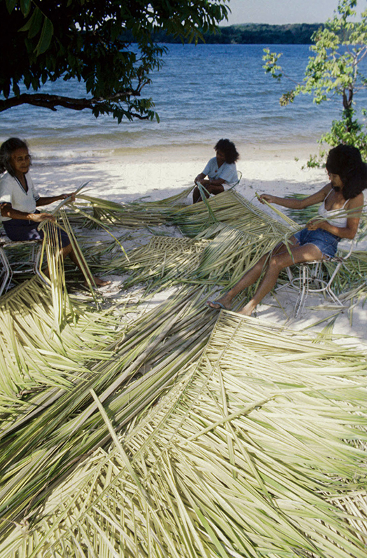 Making the flour is primarily a female work, but at various stages of the process the whole family helps. In the process the manioc is harvested, peeled and grated. The dough is then placed inside a long cylindrical object, made of braided straw and hung from the ceiling of the flour hut which, when stretched, extracts the yellow water from the dough, which is called tucupi. The dry dough is then roasted in a large oven and transformed into flour. The tucupi rests so that the starch or gum is separated from the liquid. Tucupi is poisonous due to the presence of hydrocyanic acid, but cooking eliminates the poison. After fermented for 3 to 5 days it is used as a sauce.