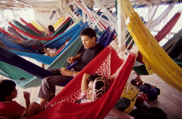 Canoes and larger boats are the main means of transport. The trips take hours or days and people sleep in hammocks that rock with the boat.